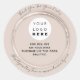 An elegant wedding small business favour sticker in rose gold blush tonality.