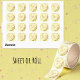 Show your gratitude with this chic design available in two sizes. It features a wreath of greenery and tiny white flowers in shades over a pastel yellow background.