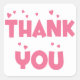 Say thank with love. This sweet sticker features a pink thank you greeting in a fun heart font highlighted against a creamy white background.