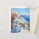 A stylish card with the words “Thank you!” and a picturesque view of Santorini. Snow-white houses with blue domes, the sea, and bright bougainvillea flowers create an atmosphere of Mediterranean romance and comfort. Perfect as a thank you card after a wedding, holiday, or trip, as well as an exquisite souvenir.