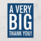 Thank you postcards with big letter typography. Cute modern thankyou cards for thanking wedding guests, friends, family, coach, mum, dad, teacher, nurse, boss, employee etc. Text design with modern big letter typography and custom colour in the background. ie navy blue. Customisable thanks message on the back. Perfect for wedding party, birthday, anniversary, bridal shower, baby shower etc..