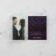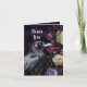 Romantic and moody, this thank you thank you card is the perfect way to thank your guests. The moody floral design features a natural bouquet of purple flowers with a white rose in the centre in a luxurious arrangement on a dark purple and black lace background with a large crow. The front says "thank you." The inside has a place to add the names of Bride and Groom and a wedding photo.