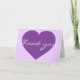 This card features a shapely purple heart overlaid by the template text, "Thank You." Click "Customize it!" to re-size/re-position purple heart image, change background color, and/or personalize text. Customize font style, color, and size.