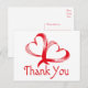 Thank You Red And White Double Heart Postcard