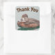 This sticker provides you an inexpensive way to express your appreciation and simply say "thank you". The photo on this square sticker features a brown female ring-necked duck sitting on water. This bird displays a beautiful layering of brown tone feathers and sports the distinctive stripe across her beak. Thank You appears at the top can easily be personalised.