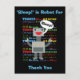 A cute and colourful design that says thank you in many languages. A robot stands in front saying Bleep! The rest of the text says "Bleep!" is Robot for Thank you! Some of the text on this design can be changed and personalised to fit your needs!