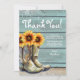 Thank You Rustic Country Western Sunflower Boots Cards features a watercolor illustration of cowgirl boots filled with sunflowers with the text "Thank You" in modern script typography and personalised with your custom message below. Designed by Evco Studio www.zazzle.com/store/evcostudio