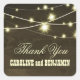 Rustic country wedding, engagement, rehearsal dinner or bridal shower thank you stickers with string of lights and wood background.