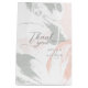 Thank your wedding party or guests with these 7” x 4.5” x 10” gift bags featuring the greeting, "Thank you," in large grey letters on an abstract watercolor floral design in soft blush, white and sage with placeholders for the wedding couple's first names and wedding date.