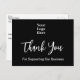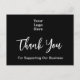 Front: There's a display image at the top that you can replace with your logo. Thank You appears in a large white script. A line of display text is below thank you. You can edit that text to show a custom message if desired. (Shown: For Supporting Our Business)