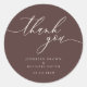 Thank you script Chocolate Brown names date Classic Round Sticker