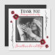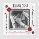 Thank you! Customise a short message and your names. Elegant red poppies wedding design. Add a snap shot from the wedding, or formal photo. Card is blank on the back for your hand written message. Black typography for Thank you. Hand written Love on the sides. Your message and names in red.