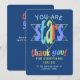 A colourful 'you are stars' flat thank you card. This modern typographic card is the perfect way to say thanks in style to support staff, a team or volunteer group. Personalise with a custom name and message.