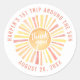 This round sticker design features a vibrant sun at the centre, with the cheerful phrase "Thank You!" placed right on top. The sun's rays burst out in classic sun colours—yellow, orange, and a hint of red—bringing a warm and joyful vibe to your celebration.