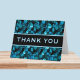 This trendy, dramatic Thank You card makes teal blue shiny swirls that look almost like muted gems or sequins, set against dramatic black. On the front, the text Thank YOU appears in dark aqua against black, bordered in a matching dark aqua. The same pattern appears on the back, with the insides being plain white for writing a message. You can also add your own text to the inside by editing the design.
