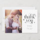 Whimsical and simple wedding thank you card featuring a text that says "thank you" in a swirly font with stars.