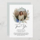 Thank You Sympathy Photo Funeral Bereavement Memorial Card features elegant watercolor flowers in blue with brown foliage surrounding a photo of your loved one. Personalised with your message below. Photo tip: use a photo with person in centre of the photo. Designed for you by Evco Studio www.zazzle.com/store/evcostudio