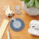 This teacher appreciation keychain features multiple tones of blue. The blue background is mosaic tiles which provide a base for the two-tone flower in the center. The pale blue inner flower provides a light background to allow your message of appreciation to stand out. Customize all text if desired.