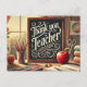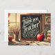 Here’s your watercolor-style Teacher Appreciation Week postcard! 🎨📚 The image features a vintage chalkboard with elegant white calligraphy reading "Thank You, Teacher!", along with classic apple and book elements in a cosy classroom setting.