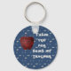 The end of the year, holidays, or teacher appreciation week are all the perfect times to say thank you to a special teacher. A bright red mosaic apple appears along with the words, "thank you for being my teacher" on this inexpensive keychain. The background features a dark blue colour dotted with random light grey dashes. The text can easily be customised to say anything you wish to express.
