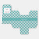 Easily personalise the text on this teal and white party theme with the text templates supplied.  The geometric design in the background is a teal and white, printed gingham checks pattern for an all-over print.  There is a square on the top and a ribbon around the centre  for your text.  Use the easy text templates to add your own words, name, initial, or monogram.  A great idea for gifts or party favours for your party, no matter the event.  This design is suitable for all occasions or events including a birthday party, a baby shower, or congratulations,  just by changing the text.