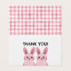 Thank you folded tent card with pink baby rabbits. Back with chequered pattern.