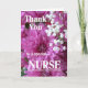 Send this card to a deserving nurse, for going above and beyond the call of duty for you or a loved one. Features a bouquet of pink and white flowers.