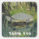 Do you love turtles or are you a nature enthusiast? This square thank you sticker features a photo that captures a turtle resting on a rock against a backdrop of moss and reeds. The turtle's and reed's reflections can be seen in the lake water. The words "Thank You" appear in the water and may be customised if you desire.