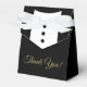 This fun wedding favour or gift box is designed to look like a tuxedo. The text reads Thank You on the front with the wedding couple's names and wedding date on the back. All fields are customisable. Perfect thank you box for groomsmen, your best man, the father of the bride, the ring bearer, or any other special wedding guest who might appreciate a more masculine looking favour box.