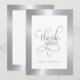 Thank you typography, silver on white background card