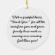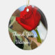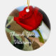 Photo of veteran holding a single, long-stem, red rose on black background. Let your veterans know how much their sacrifice means to you and your freedom with this ornament. Front greeting and back message can be customised with your own words.