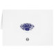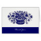 Custom Thank You cards with optional script letters on the front and vintage woodcut art of flowers in a basket in blue on a blue and white.