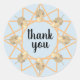 This thank you sticker features an orange star on a pale blue background, as well as a leaf painted in watercolors. This modern thank you sticker is great for weddings, baby showers, bridal showers, or birthday party favours.