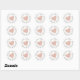 A bright rose heart on white circle sticker, with your own names, and the words Thank You