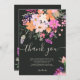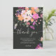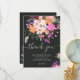 Add your custom thank you cards to your baby or bridal shower with this original, cute country wild flowers in pastel pink, purple, orange and greenery flowers and leaves on editable dark background