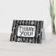 This "thank you" card is a joy! It has thick and thin stripes in black and white. Different types of patterns of circles decorate the stripes. "Thank you!" is on a white background with a black border and is in a fun font with that echoes the circle theme. Add your own verse on the inside through Zazzle or purchase blank and write an inside verse by hand. Buy in bulk so you'll always have "thank you" cards on hand.