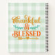 This design features the text "Thankful and Blessed" with a checkered pastel blue background. It is perfect for Thanksgiving and fall or autumn. It can also be an appreciation gift for friends and family members.