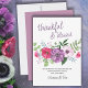 Floral Pregnancy Announcement card which you can personalise with your message and baby due date. Thankful and blessed is lettered in casual handwritten script and the design has a watercolor bouquet of anemone, poppy and wildflower in shades of purple and pink, framed with delicate greenery. Perfect whether you're making your pregnancy announcement in summer or expecting your baby in the fall or thanksgiving season.
