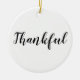 Thankful black and white script calligraphy cute thanksgiving Christmas Ceramic Ornament.