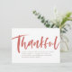This Thanksgiving dinner invitation features a bold brush script "thankful" along with modern typography for your party details. This invitation coordinates with the Lea Delaveris Design Thankful Thanksgiving collection.