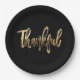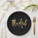 Thankful Elegant Faux Gold Script Thanksgiving Dinner Party Black and Gold Look Paper Plates