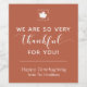 A clean and modern wine label that reminds those who you love that you're thankful for them this holiday season. Available in a Rust Brick colour with simple white lettering and a small Thanksgiving leaf adorning the top. Great for family members near and far, neighbours and coworkers!