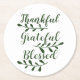 Thankful Grateful Blessed dark green modern script Round Paper Coaster