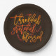Thankful Grateful Blessed Thanksgiving Dark Brown Paper Plate