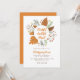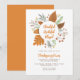 A Thanksgiving Dinner Invitation with an autumn fall leaves wreath design and calligraphy script fonts saying “thankful grateful blessed”.