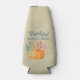Bottle cooler with typography text which says: Thankful grateful blessed. perfect for the thanksgiving season. An image of an orange watercolor pumpkin with autumn leaves and sprigs.