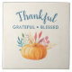Thankful Grateful Blessed with Orange Pumpkin Ceramic Tile