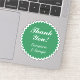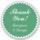 This grateful, seal style sticker design features the appreciative message "Thank You!", and a personalised name. The seal shape is coloured sea green. A sticker like this might be used to help show appreciation for something special that somebody else has done, such as attending a wedding or giving a graduation party gift.