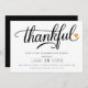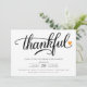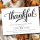 Celebrate Thanksgiving with your loved ones with this stylish and elegant invitation. The invitation features a black script calligraphy font saying "thankful" with a heart set on a white background. The perfect way to invite your guests to a memorable evening of food, fun, and fellowship.