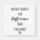 "Never Forget The Difference That You Make " is a powerful reminder of the impact we can have on the world around us. It encourages us to recognise the positive influence our actions, words, and presence can have on others. Whether it's a small gesture of kindness or a significant contribution to a cause, every individual has the potential to make a difference.